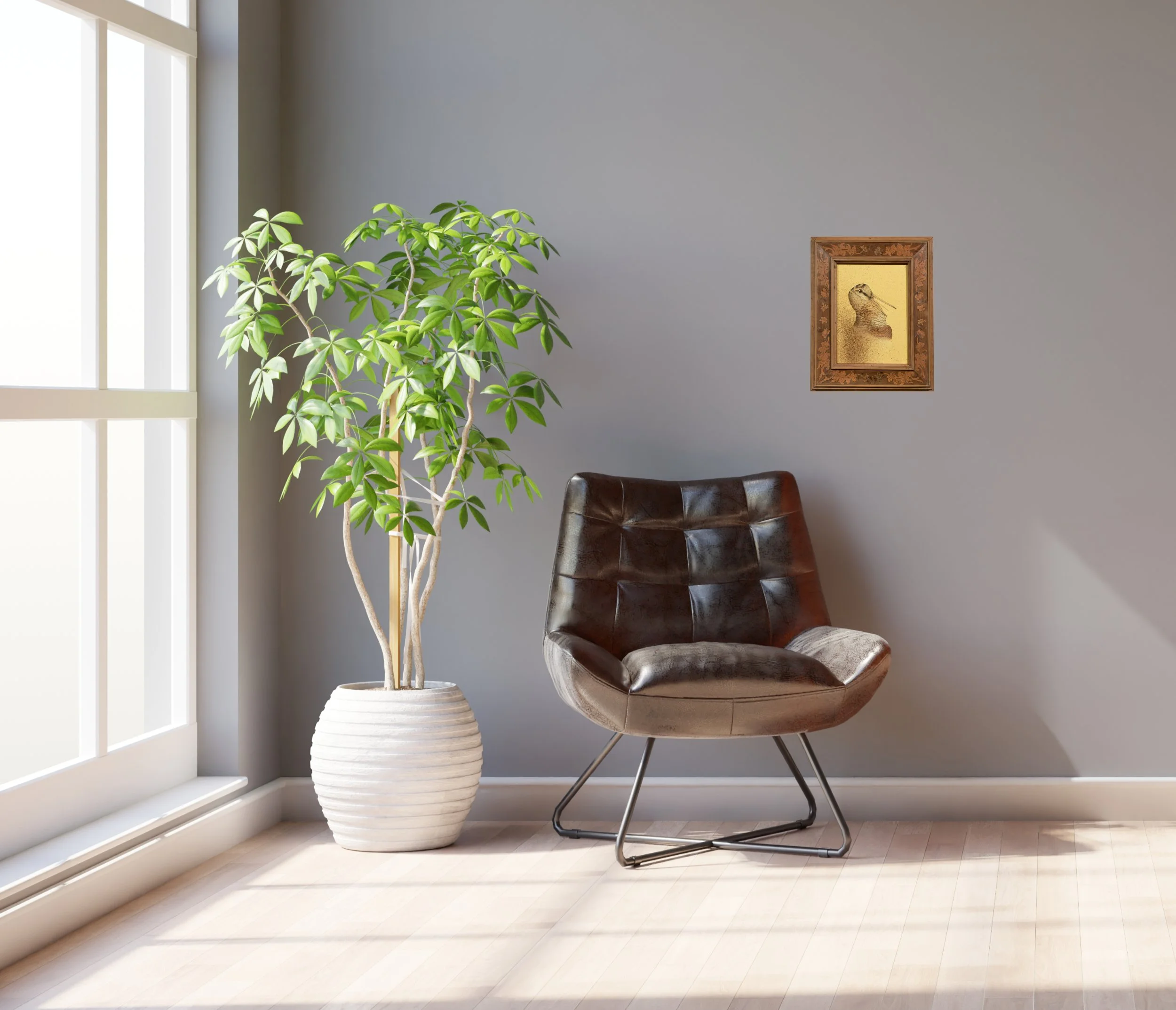 Eighteenth century rococo marquetry frame. Behind museum quality glazing.